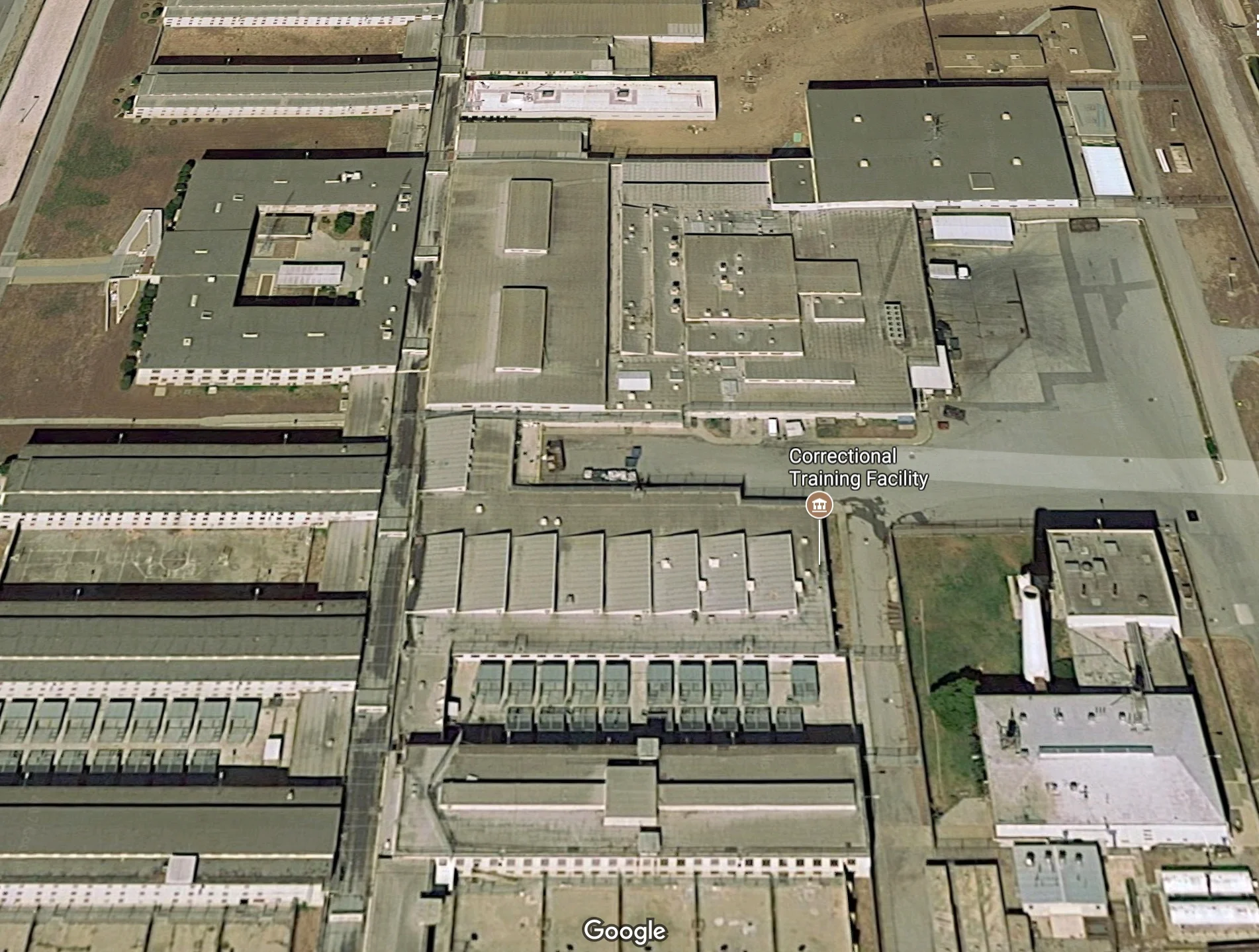 Image: Soledad State Prison, CA: capacity 3,312. Imagery©2017Google, Map Data©2017 Google
